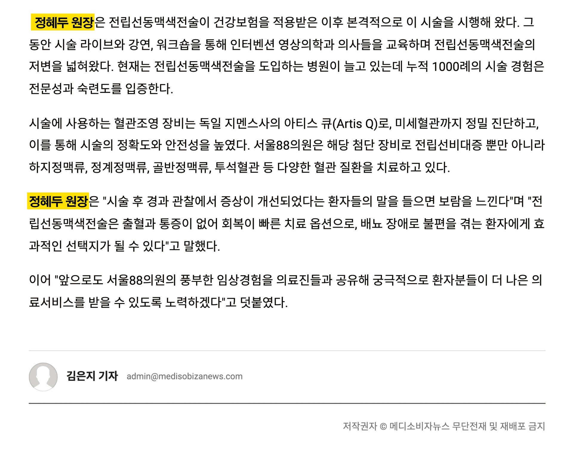 [메디소비자뉴스] 서울88의원 정혜두 원장, 전립선동맥색전술 1000례 돌파