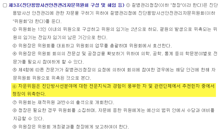진단용 방사선 안전관리 자문위원은